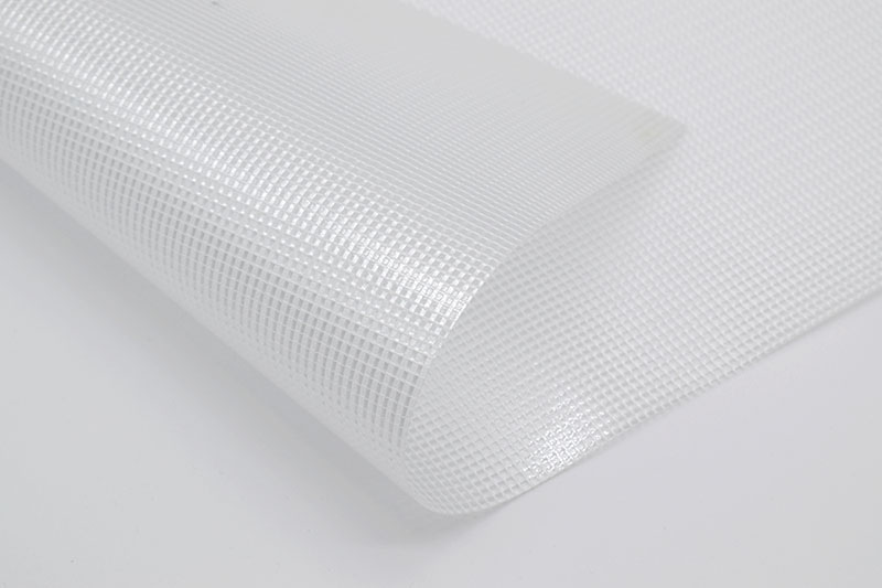ผ้าตาข่ายเคลือบใส ผลิตจากผ้าทอที่มีรูเว้นระยะเท่าๆ กัน ช่วยให้อากาศและน้ำไหลผ่านได้ ผ้าใบกันน้ำแบบตาข่ายเป็นที่นิยมสำหรับการใช้งานกลางแจ้ง เนื่องจากสามารถทนต่อสภาพอากาศที่รุนแรง ในขณะที่ยังคงระบายอากาศและมองเห็นได้ ในบรรดาผ้าใบกันน้ำแบบตาข่ายประเภทต่างๆ ผ้าใบกันน้ำตาข่ายเคลือบโพลีพีวีซีสีขาวใสใสเป็นตัวเลือกที่ได้รับความนิยมเพิ่มมากขึ้น